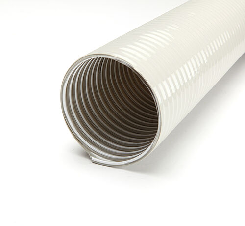 內(nèi)外層皆為PU材質(zhì),邵氏硬度為85A; PVC包覆的彈性鋼絲粘結(jié)于內(nèi)層管壁
